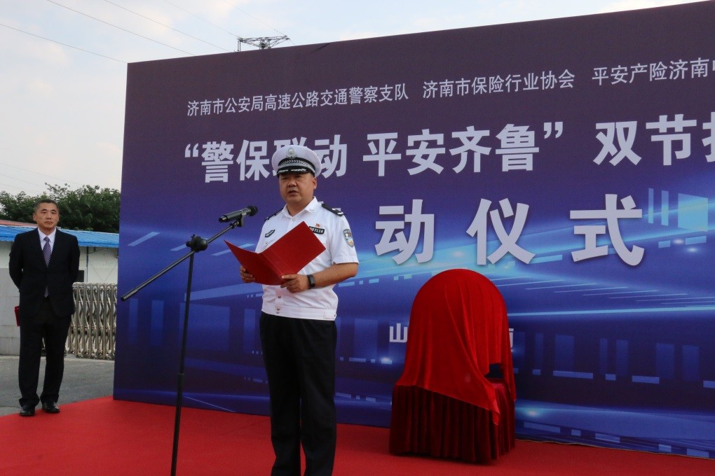 9月27日下午,济南高速交警支队、济南市保险行业协会、平安产险济南中心支公司联合举行了“警保联动 平安齐鲁”双节护航启动仪式。济南高速交警支队支队长黄强、平安产险山东分公司副总经理钱烽分别致辞,济南市保险行业协会秘书长任海军主持活动。