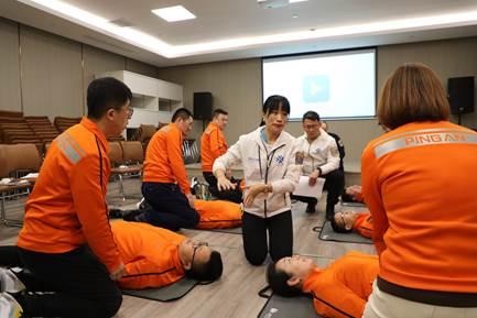 据国家卫生局统计,我国每年有54万人因心脏骤停而离世,居全球之首。在突发心脏骤停时,如果施予正确的心脏复苏,有50%的患者是可以成功复苏的。因此,把握急救“黄金时间”,能应对突如其来的意外。为了更好的服务客户,为客户提供更多的高效、专业、及时的优质服务,保障员工自身和客户的安全,切实提高公司理赔员面对突发事件的应急处置水平和自救互救能力。12月12日,平安产险山东分公司积极响应集团“平安守护者行动” ,邀请美国心脏协会(AHA)国际救护员团队前来山东产险,为查勘理赔队伍授课,让每位橙衣卫士,成为应急救援的战士,本次总计40余名救援人员接受培训。