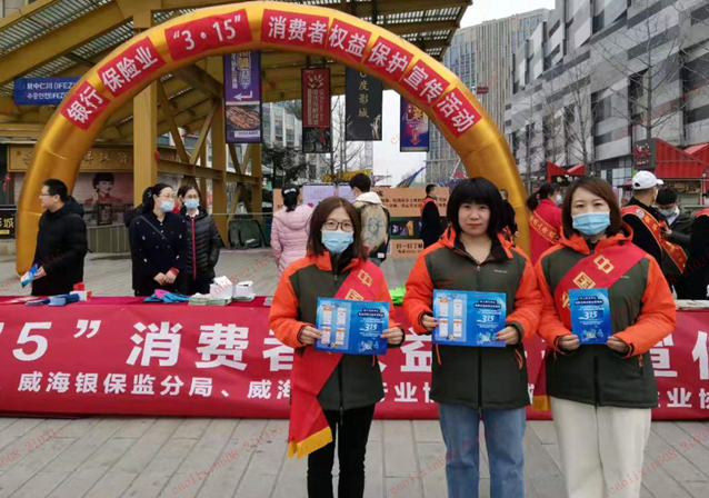 为全面落实2021年中国银保监会工作会议精神,不断加强金融消费者保护,强化消费者教育,全力维护经济金融安全和消费者合法权益,做好“3·15国际消费者权益日”宣传活动,山东平安产险威海中支在威海银保监分局的统一安排下,在威高广场开展了3.15消费者权益宣传活动。