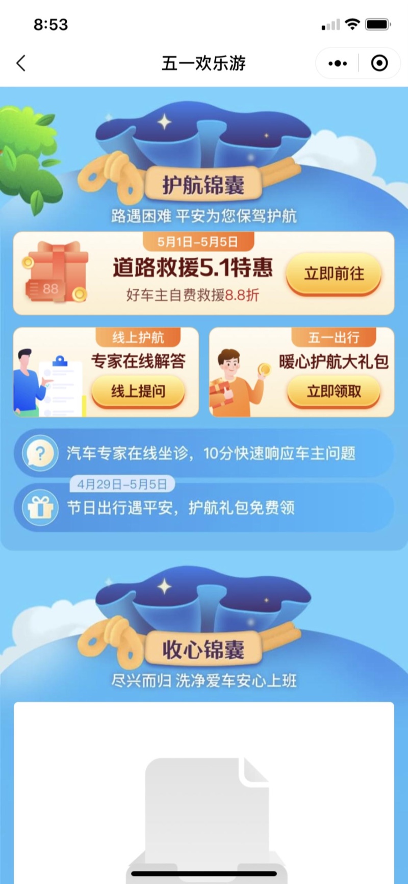 线上护航方面,平安好车主APP数百位用车专家实时在线,车主们在出行中碰到的用车问题和出行困难都可线上找专家寻求解答,10分钟内快速响应,全程守护出行安全。五一期间,公司会根据用户出行前中后期的用车需求,设计安全、安心、省钱、护航、收心五大锦囊,为用户提供服务,让你省钱更省心;对于期间出险客户,推出“修车无忧”和人伤“先赔后治”特色暖心理赔服务,让出行客户切身感受到有温度的服务。