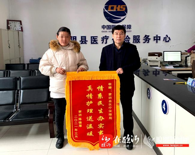 一大早,蒙阴县医疗保险事业中心上演了温馨的一幕,家住蒙阴县蒙阴街道南官庄村的陈先生女儿将情系民生办实事 真情护理送温暖的锦旗送到蒙