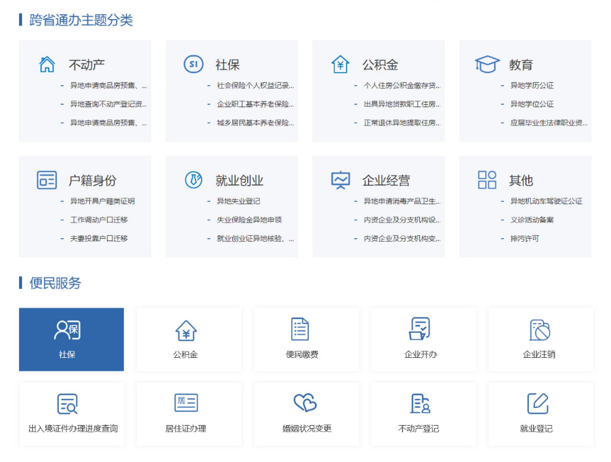 “跨省通办”专区覆盖与我省经济社会发展紧密的省份热门高频服务事项,涉及社保、不动产、公积金及企业经营等140项,“一网通办”微信小程序首批上线社会保障、身份证、户政业务及疫情防控等4大主题60项“全程网办”高频服务事项。